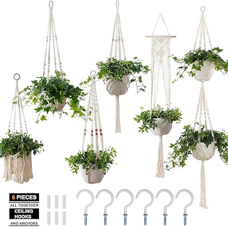 Amazon Com 6 Piece Macrame Plant Hangers With 6 Pack Hooks